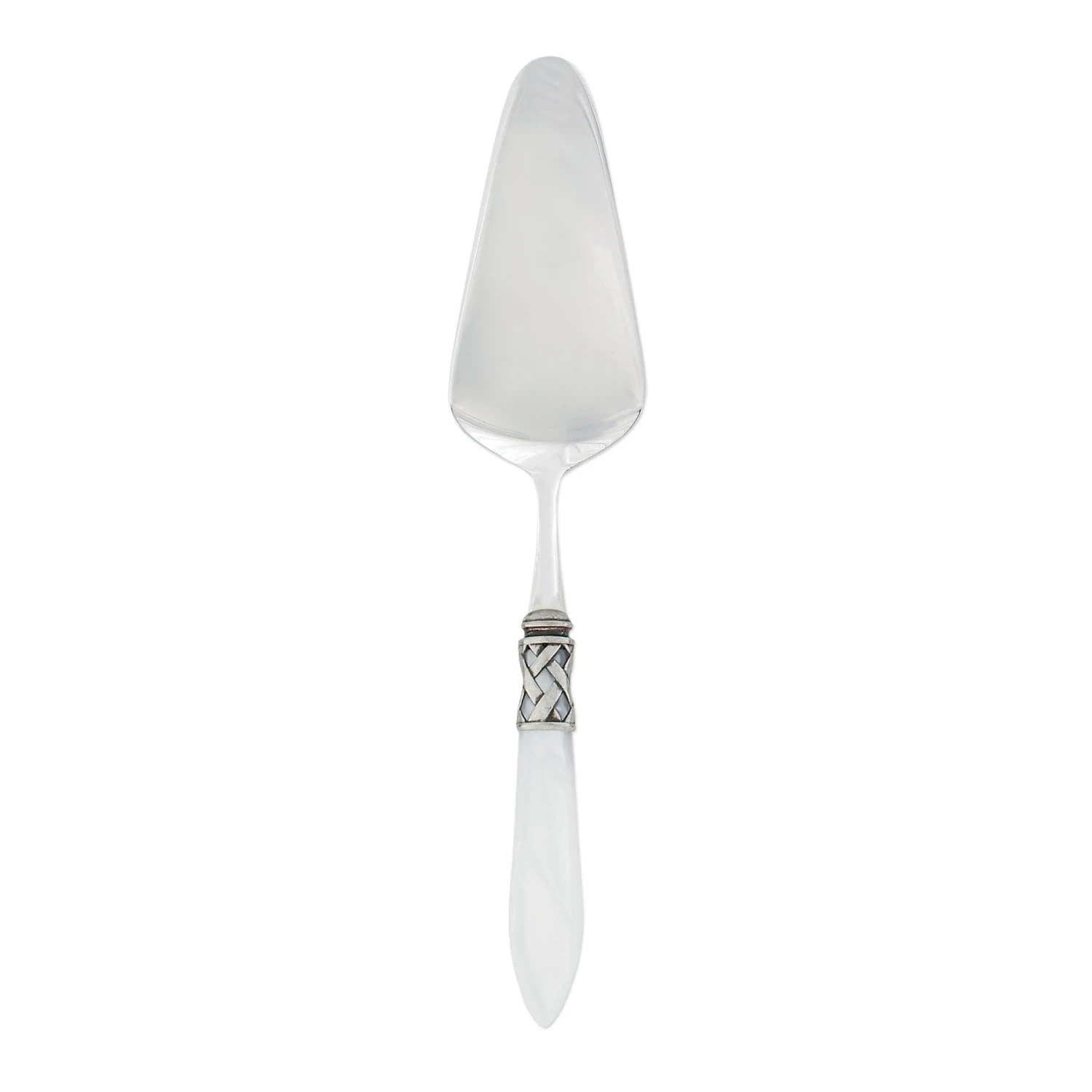 The Aladdin Antique Pastry Server features elegant pearlized handles with the strength of high-grade acrylic and 18/10 stainless steel. This piece is also available in our brilliant finish.