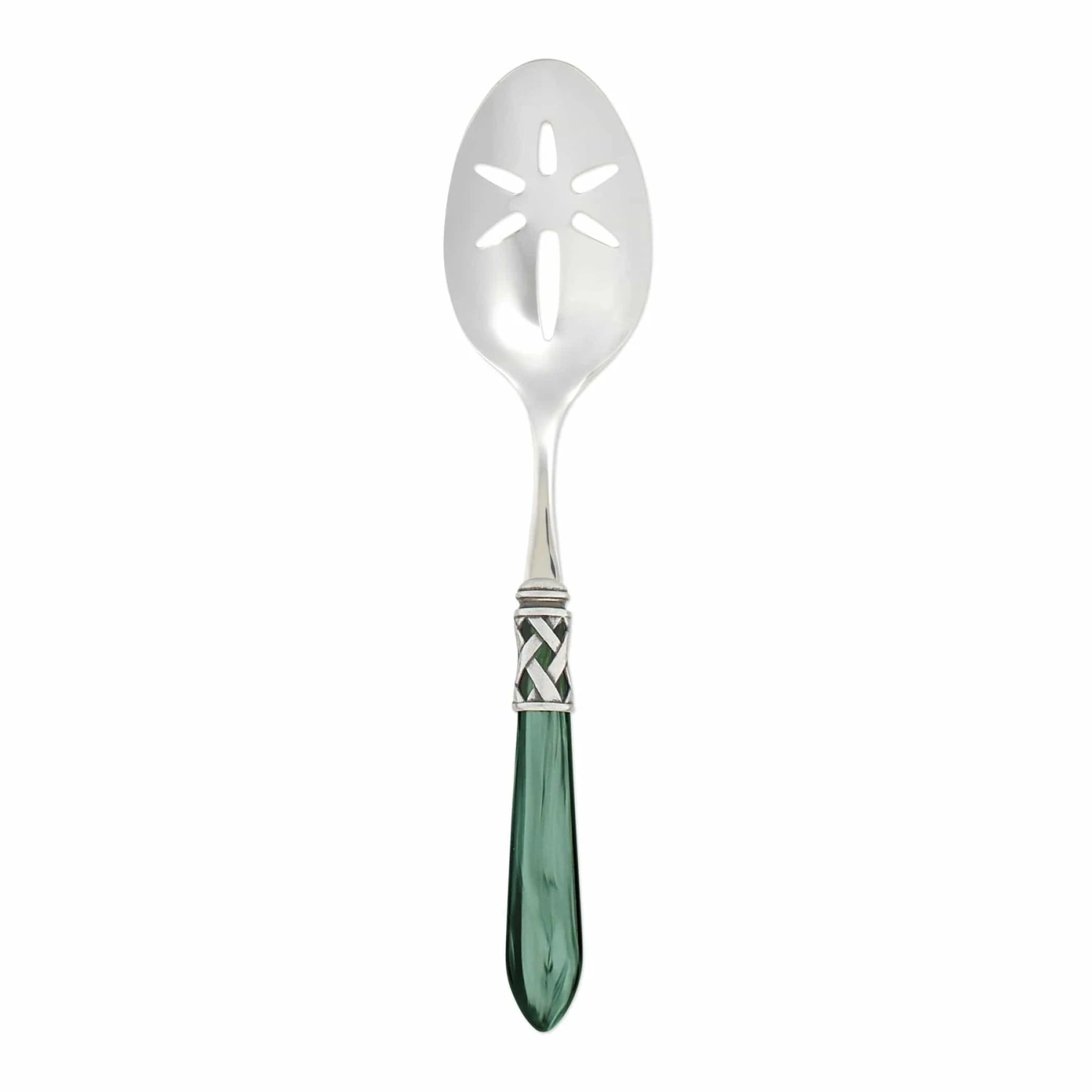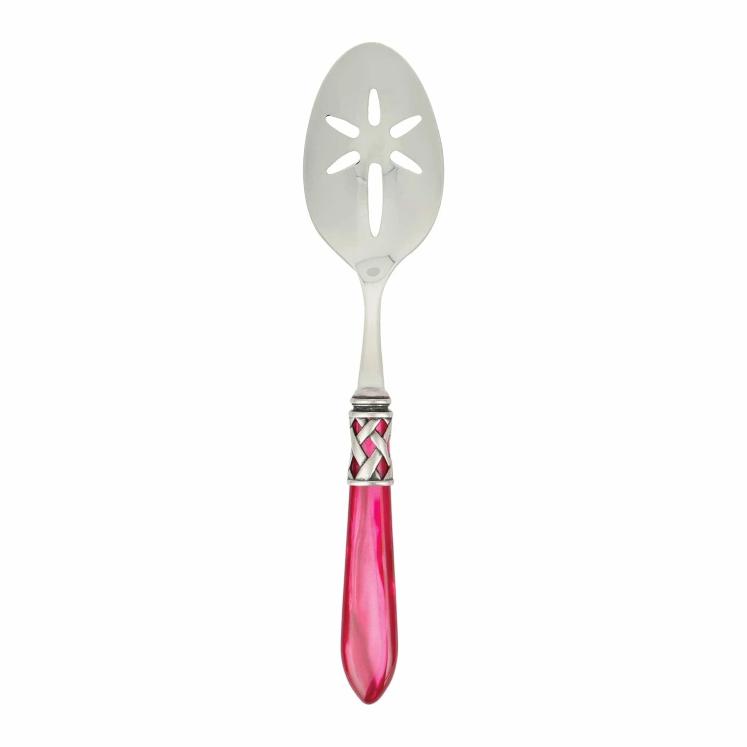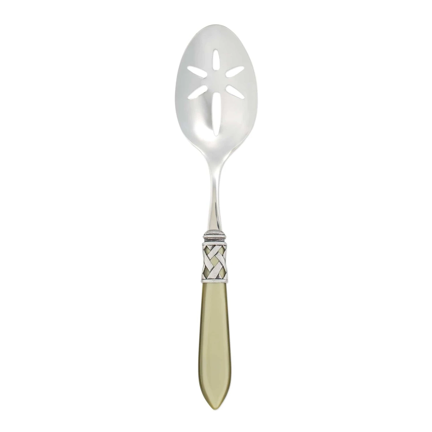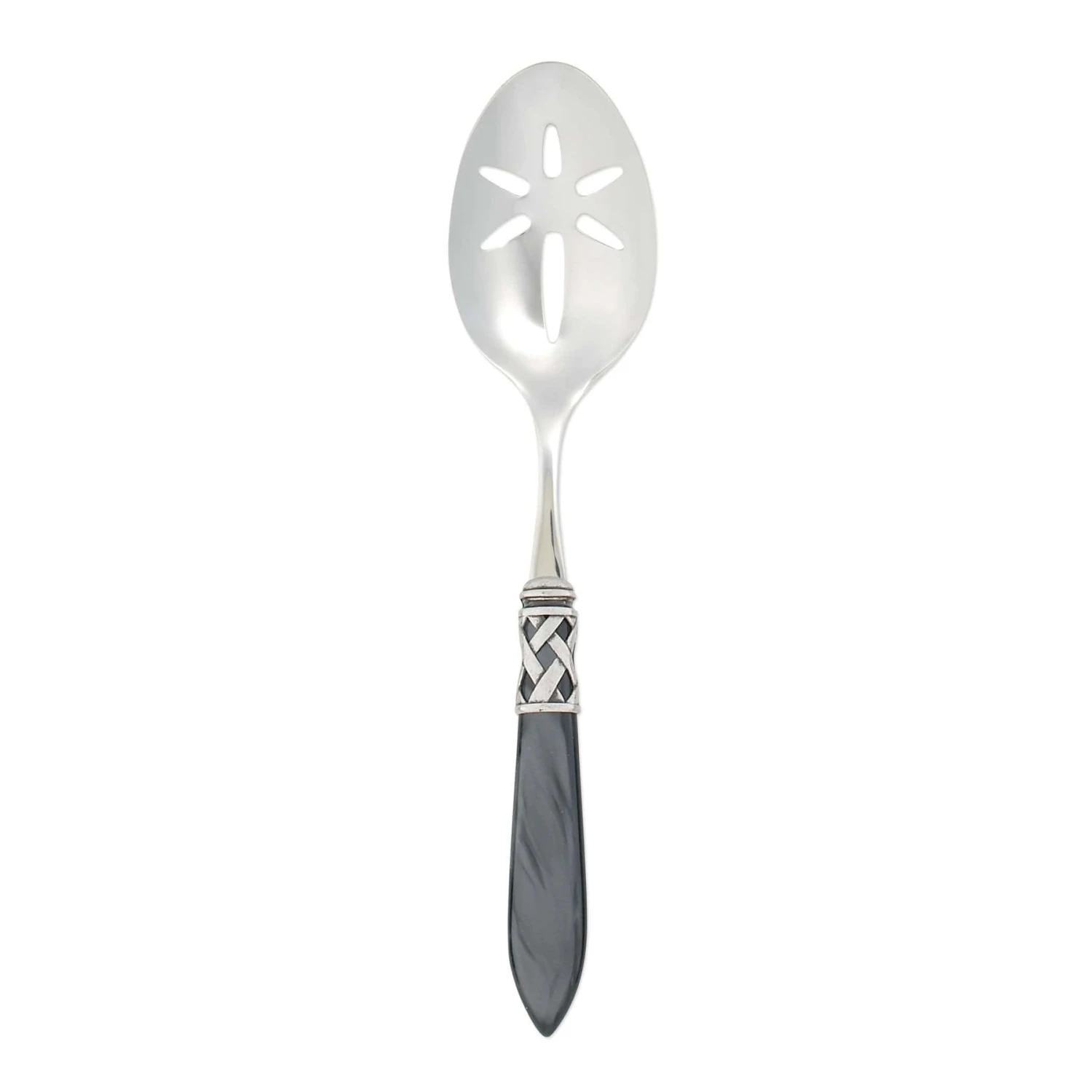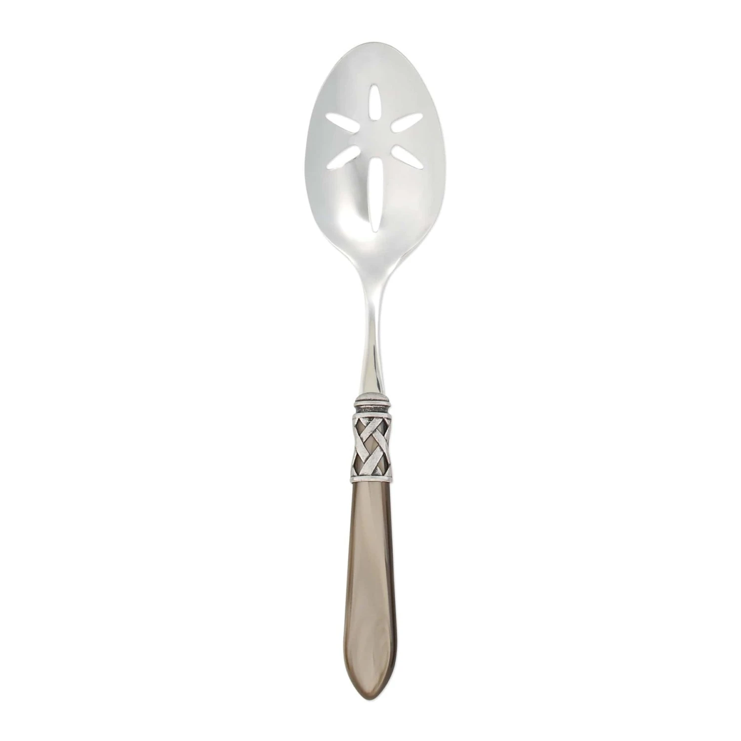The Aladdin Antique Slotted Serving Spoon features elegant pearlized handles with the strength of high-grade acrylic and 18/10 stainless steel. This piece is also available in our brilliant finish.
