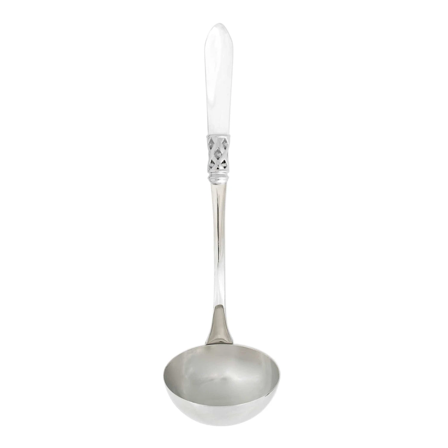 The Aladdin Brilliant Soup Ladle features elegant pearlized handles with the strength of high-grade acrylic and 18/10 stainless steel. This piece is also available in our antique finish.
