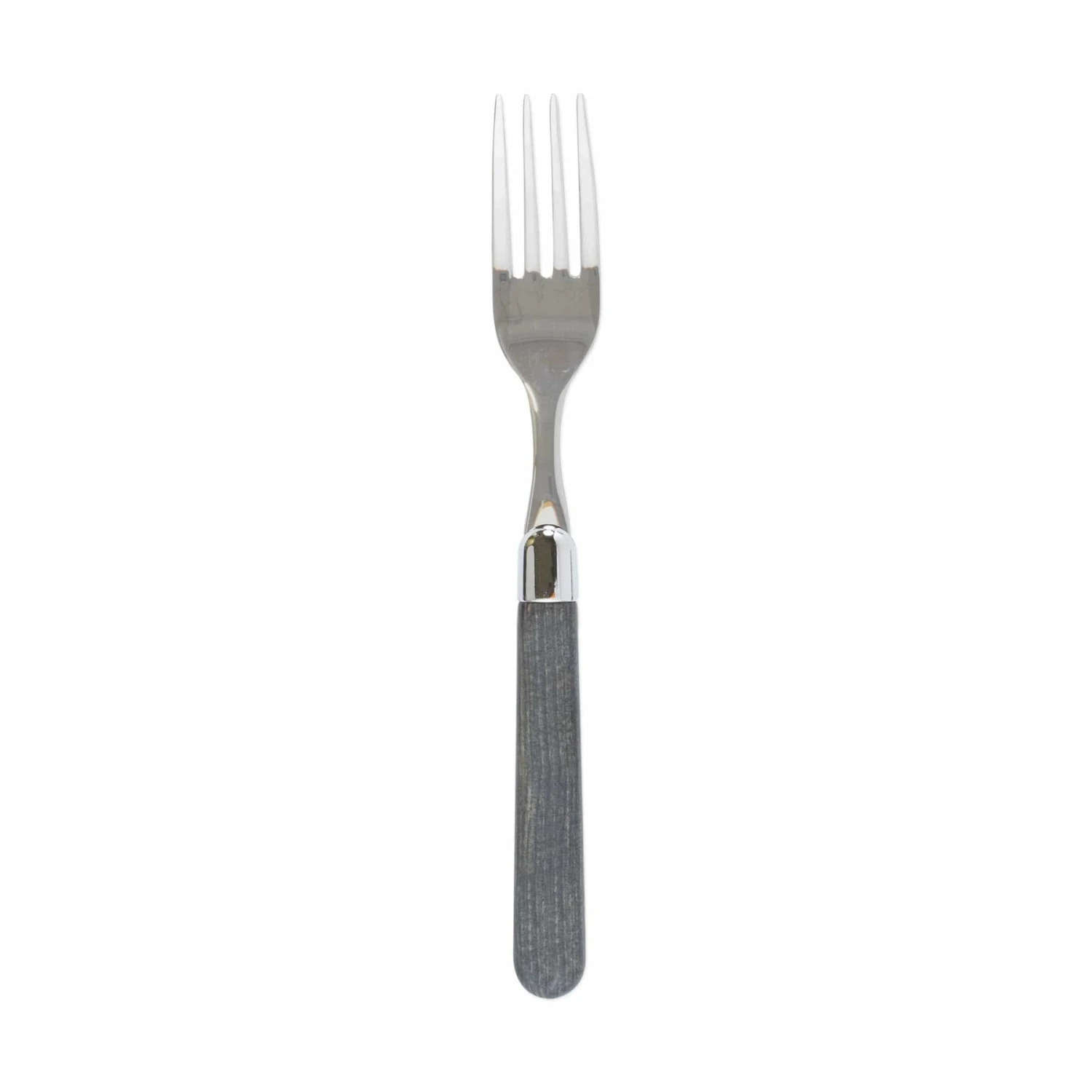 The Albero Place Fork in muted black features warm wood handles, with the strength of high-grade polyester and 18/10 stainless steel.