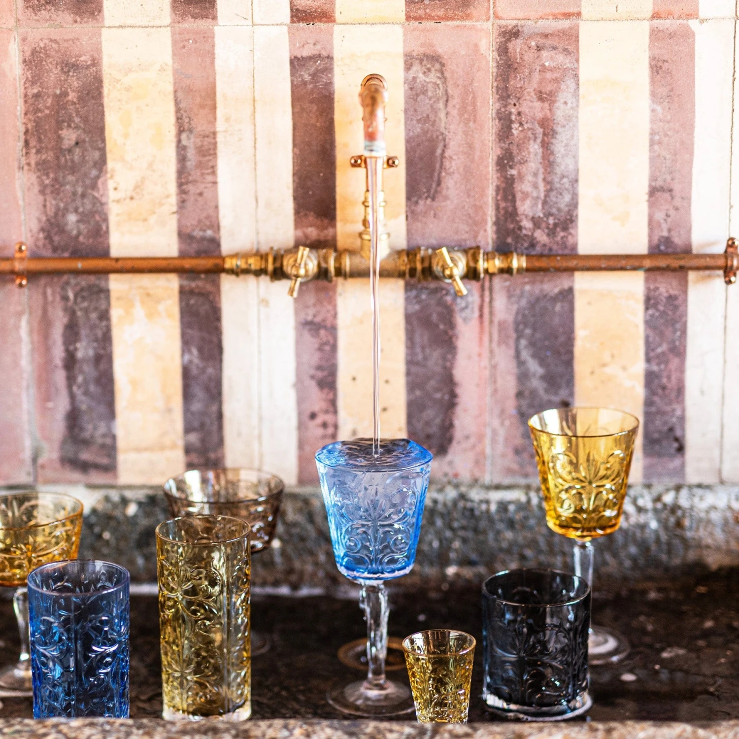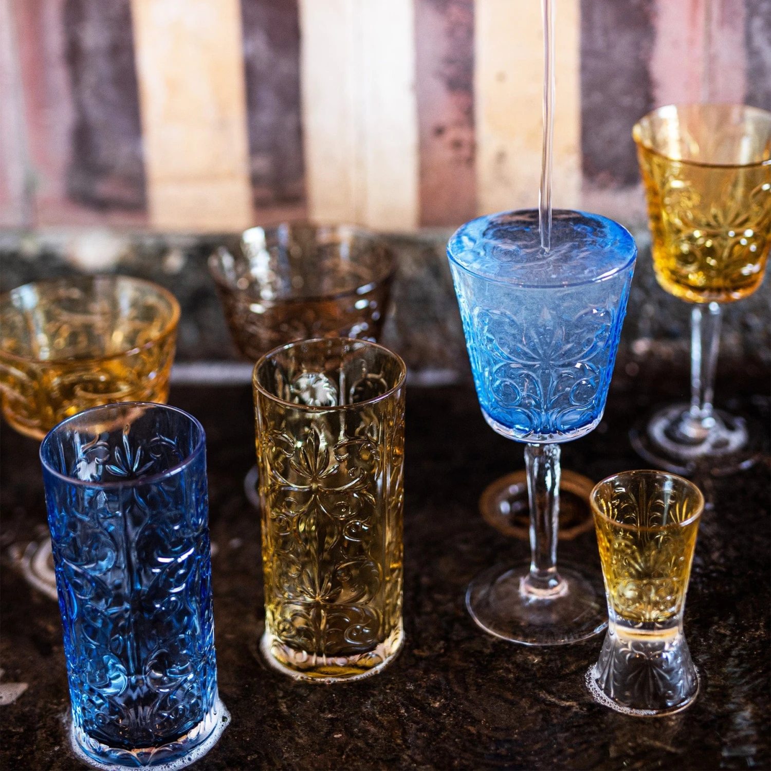 The artful etchings, stately shapes, and rich color of Barocco Amber High Ball honor Italy’s 17th century Baroque period and bring a gracious grandeur to your gatherings.