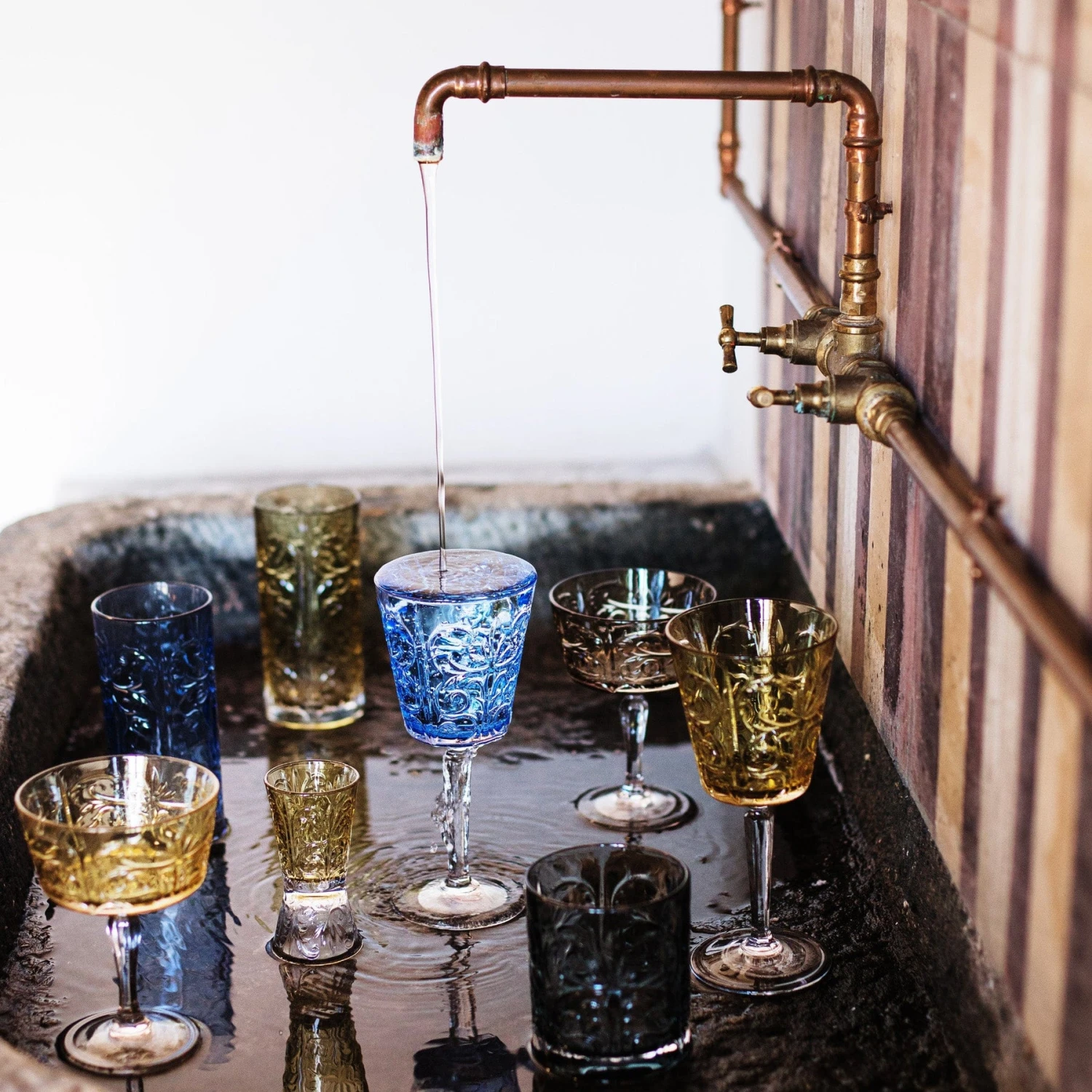 The artful etchings, stately shapes, and rich color of Barocco Amber Wine Glass honor Italy’s 17th century Baroque period and bring a gracious grandeur to your gatherings.