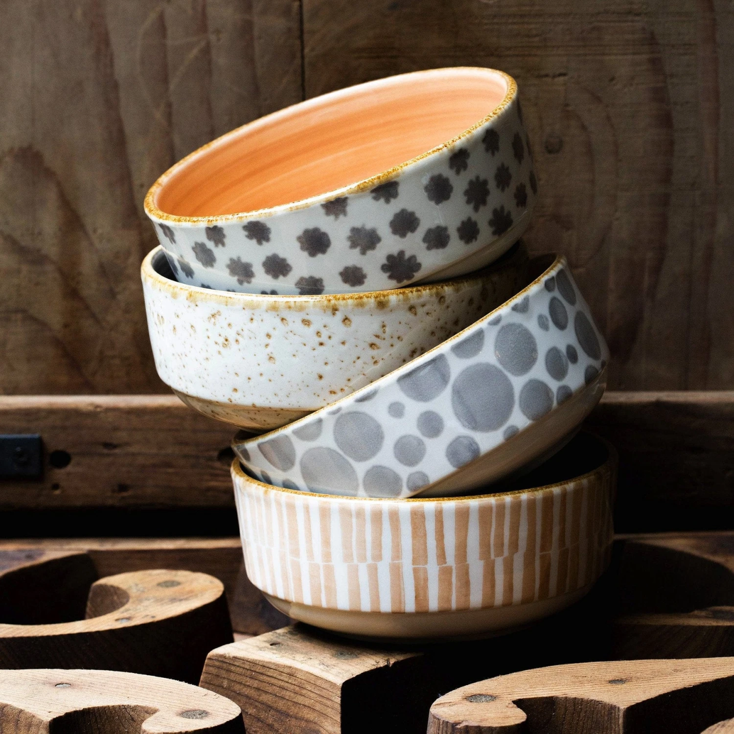 The Earth Assorted 12-Piece Place Setting combines mid-century neutral tones with simple silhouettes in four versatile handpainted patterns.