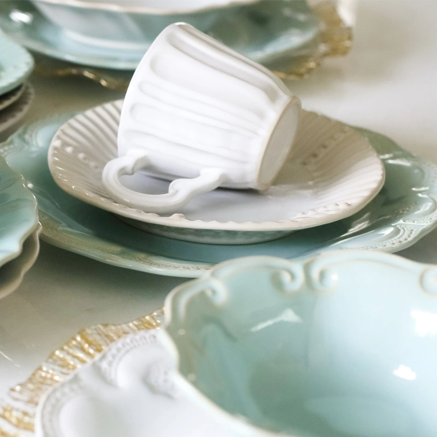 Italian for enchantment, Incanto is inspired by Italy’s art, landscape, and Venetian history. The stripes on the Incanto Stone Stripe Salad Plate pay homage to the stately columns of the Palladian villas along the Brenta River. The plate is made to be mixed and matched with other designs in the Incanto collection.