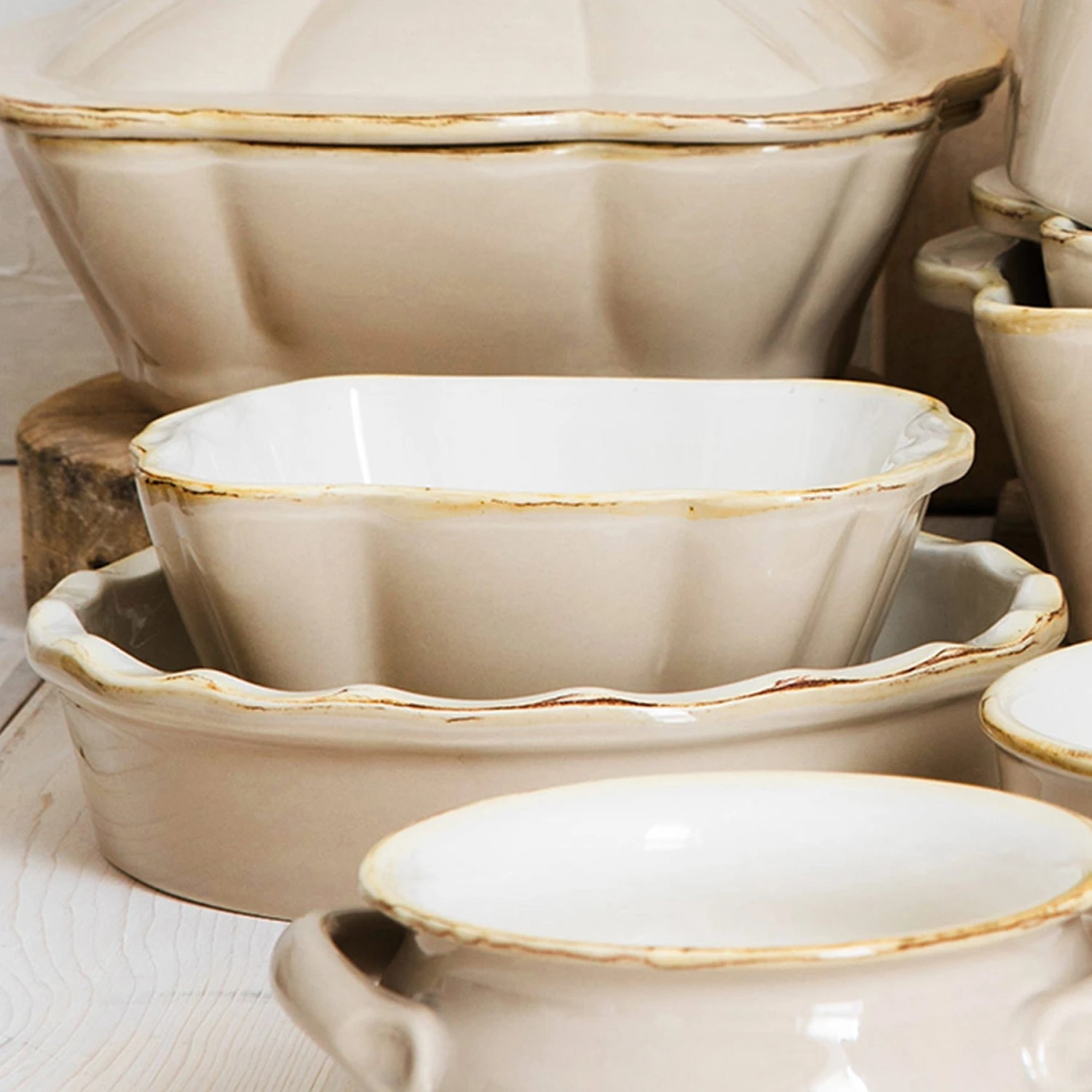 Oven Safe – VIETRI’s casserole and baking dishes can be used in most conventional ovens and dishwashers. They are handcrafted of very dense clays and fired at high temperatures, making them heat resistant up to 400°F. Do not use casserole lids in the oven, unless otherwise noted. Hot casseroles and baking dishes should never be placed on cool, damp, or unprotected surfaces. VIETRI bakeware should never be taken directly from the refrigerator to the oven due to the extreme temperature change, nor should it be placed directly from oven to freezer. The handles of these pieces are decorative and should not be used for support. Please remove the bakeware from the oven by holding the body of the dish, supporting the base.