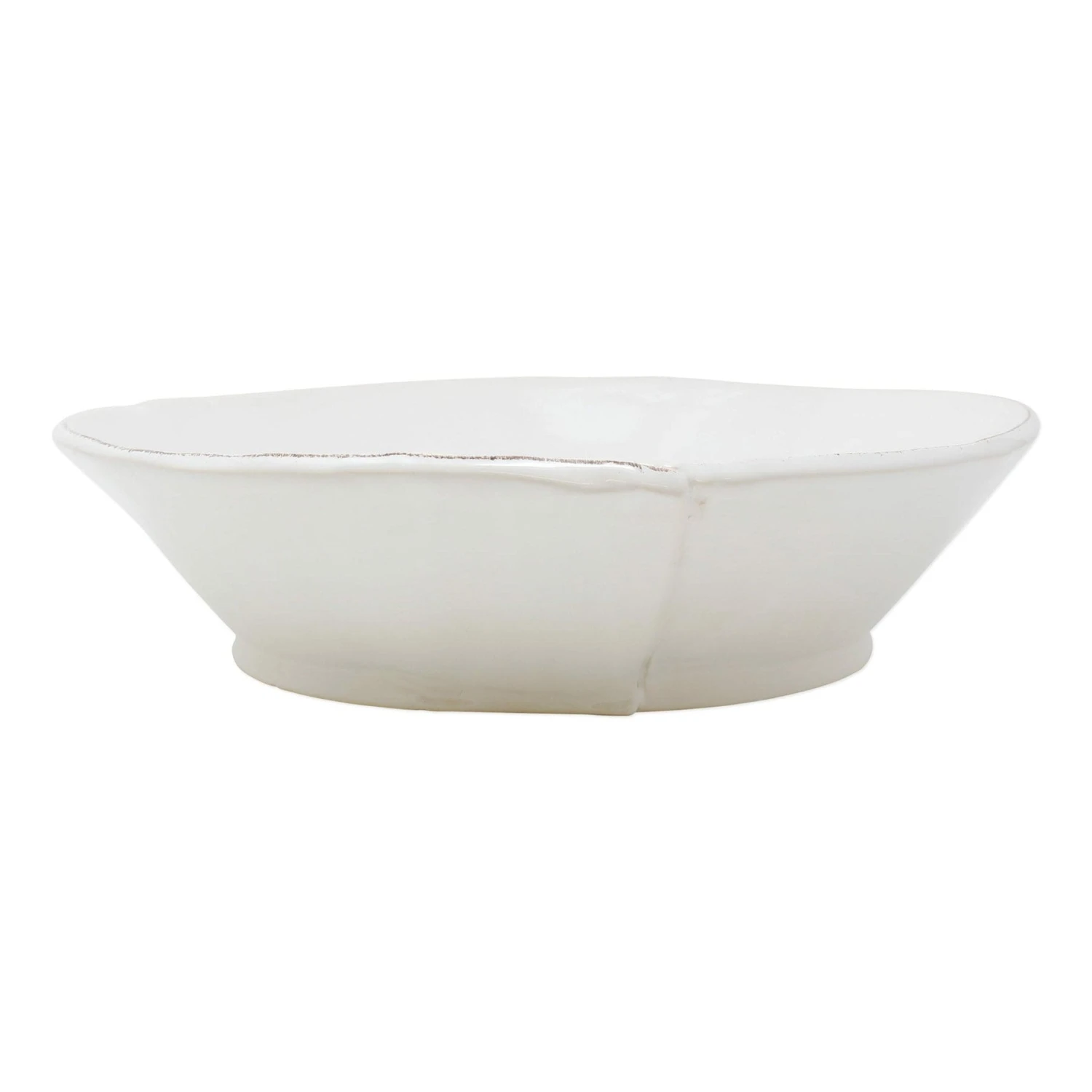 Beloved for its sophisticated simplicity, versatility, and durability, Lastra is our bestselling collection. The understated elegance, clean lines, and unique shape of the Lastra White Large Shallow Serving Bowl make it a timeless choice for your table. Lastra’s design was inspired by the circular wooden slabs used for centuries to create the outer mold in cheesemaking throughout Italy. When fashioned together with twine, the hoop was left with a slight overlap to help maintain the shape of the cheese mold. Maestro molder Stefano Roselli incorporates the overlapping detail into the entire design, from its foot to its rim. A dark dusting on the edges of each piece suggests the ash that was used to preserve these cheeses and highlights each unique silhouette.