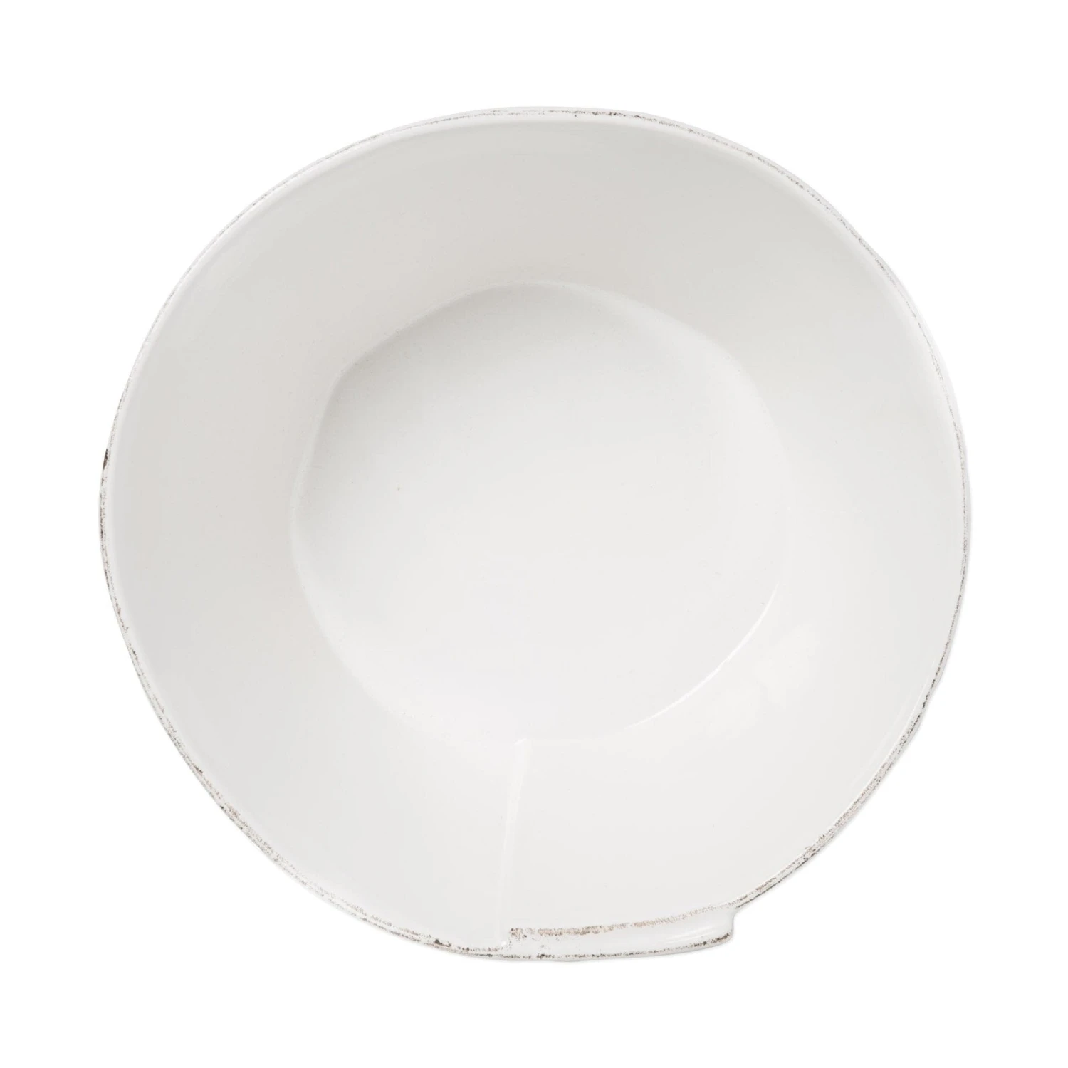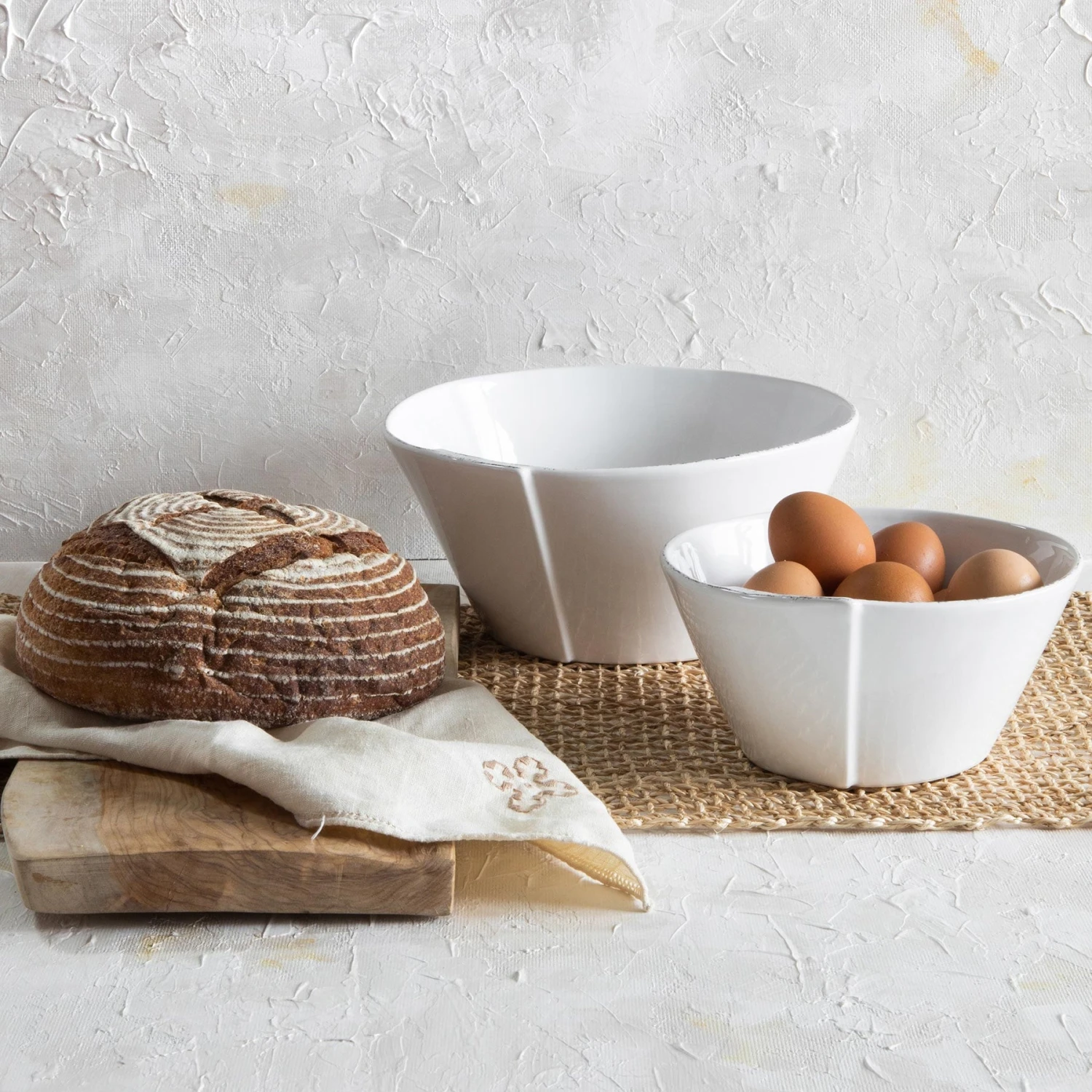 Beloved for its sophisticated simplicity, versatility, and durability, Lastra is our bestselling collection. The understated elegance, clean lines, and unique shape of the Lastra White Large Stacking Serving Bowl make it a timeless choice for your table. Lastra’s design was inspired by the circular wooden slabs used for centuries to create the outer mold in cheesemaking throughout Italy. When fashioned together with twine, the hoop was left with a slight overlap to help maintain the shape of the cheese mold. Maestro molder Stefano Roselli incorporates the overlapping detail into the entire design, from its foot to its rim. A dark dusting on the edges of each piece suggests the ash that was used to preserve these cheeses and highlights each unique silhouette.