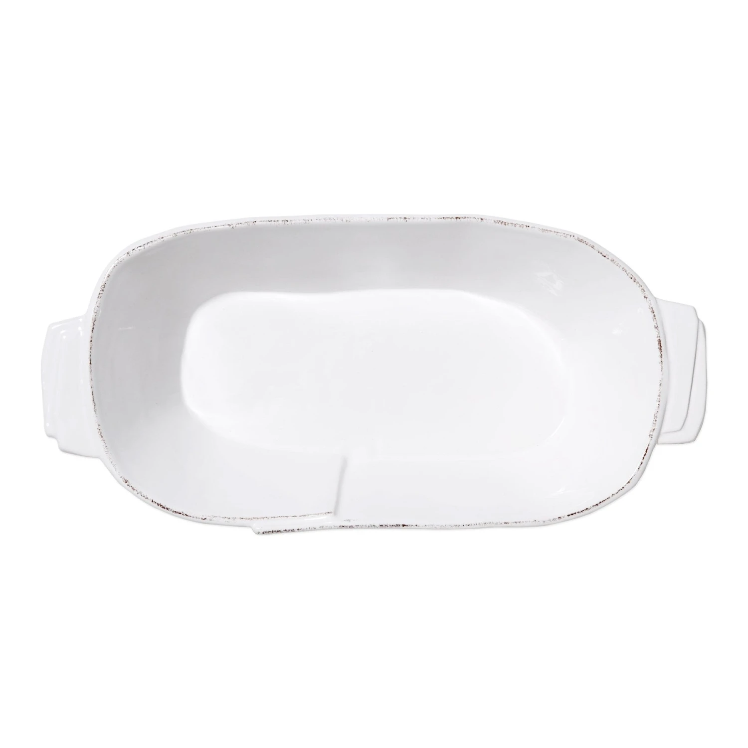 Oven Safe – VIETRI’s casserole and baking dishes can be used in most conventional ovens and dishwashers. They are handcrafted of very dense clays and fired at high temperatures, making them heat resistant up to 400°F. Do not use casserole lids in the oven, unless otherwise noted. Hot casseroles and baking dishes should never be placed on cool, damp, or unprotected surfaces. VIETRI bakeware should never be taken directly from the refrigerator to the oven due to the extreme temperature change, nor should it be placed directly from oven to freezer. The handles of these pieces are decorative and should not be used for support. Please remove the bakeware from the oven by holding the body of the dish, supporting the base.