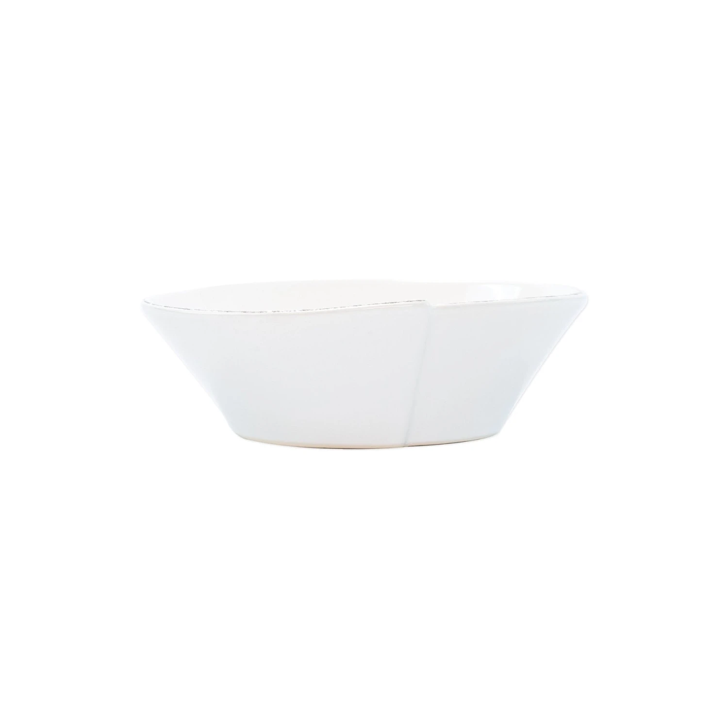 Beloved for its sophisticated simplicity, versatility, and durability, Lastra is our bestselling collection. The understated elegance, clean lines, and unique shape of the Lastra White Small Oval Bowl make it a timeless piece. Lastra’s design was inspired by the circular wooden slabs used for centuries to create the outer mold in cheesemaking throughout Italy. When fashioned together with twine, the hoop was left with a slight overlap to help maintain the shape of the cheese mold. Maestro molder Stefano Roselli incorporates the overlapping detail into the entire design, from its foot to its rim. A dark dusting on the edges of each piece suggests the ash that was used to preserve these cheeses and highlights each unique silhouette.