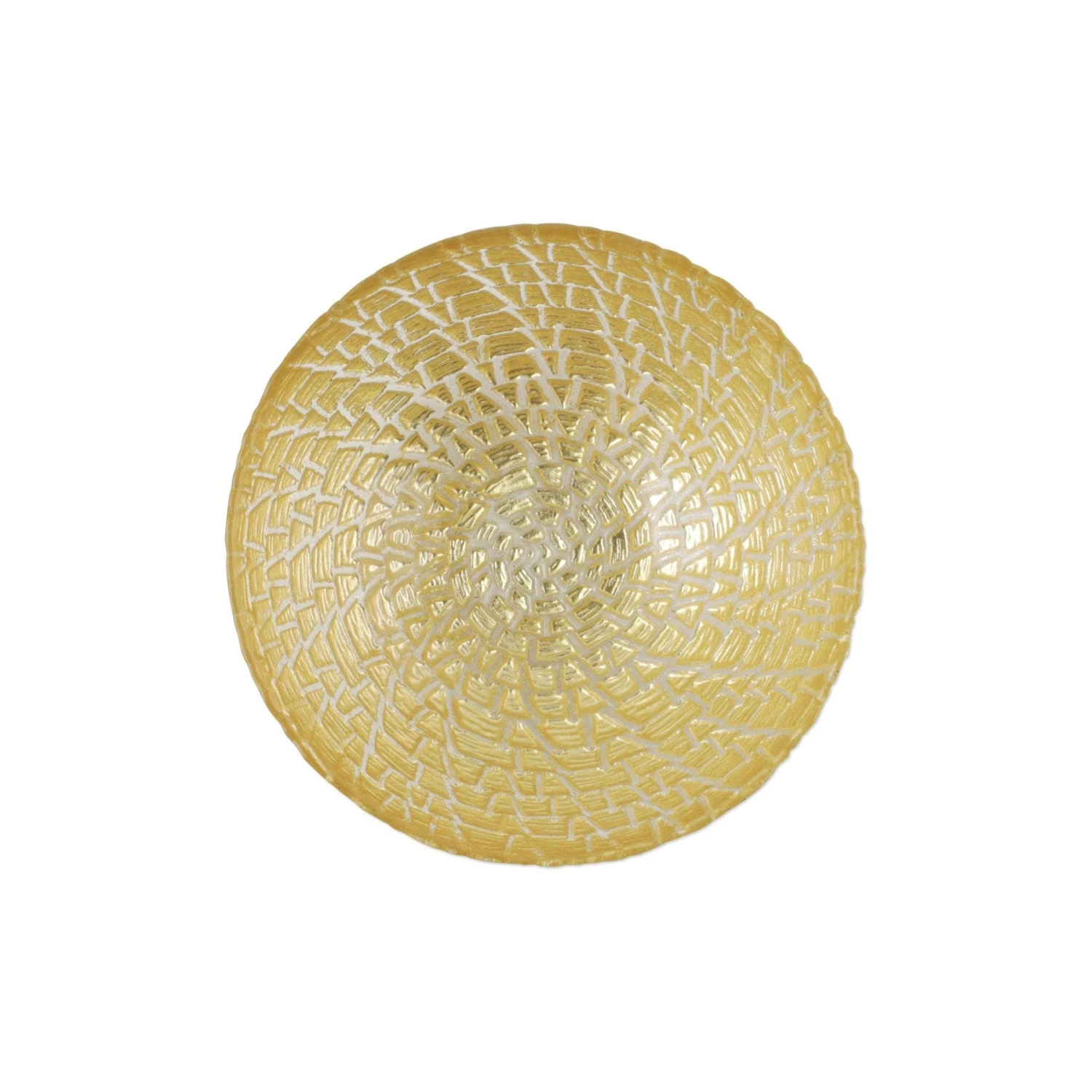 The Rufolo Glass Gold Crocodile Small Bowl brings luster to your table. The glass piece is encircled with glowing golden strands, and the embellishment is effortlessly beautiful.