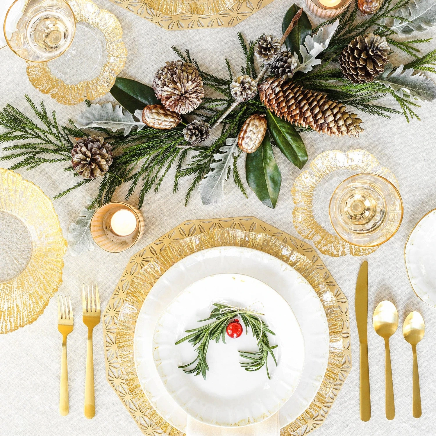The Rufolo Glass Gold Large Deep Bowl brings luster to your table. The glass piece is encircled with glowing golden strands, and the embellishment is effortlessly beautiful.