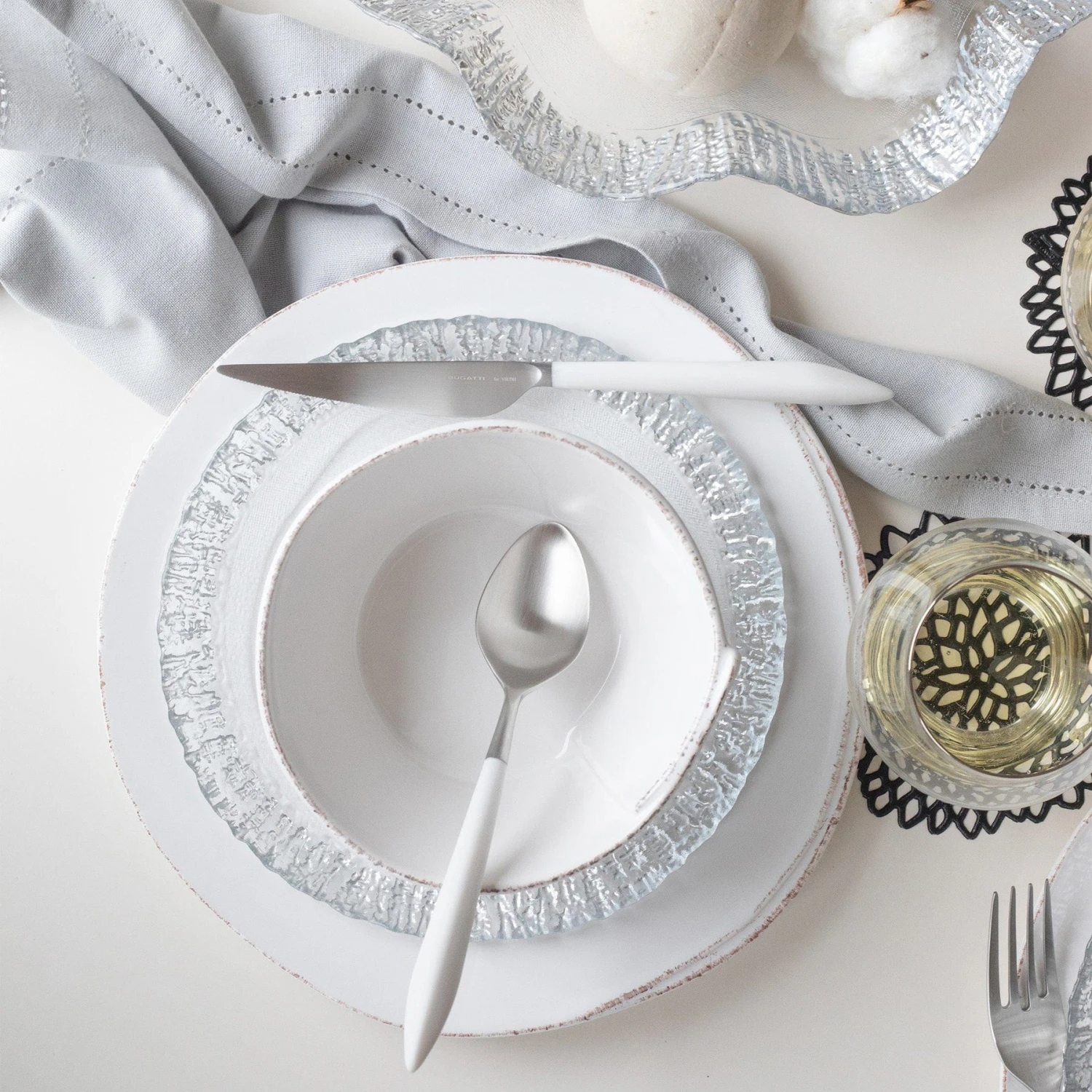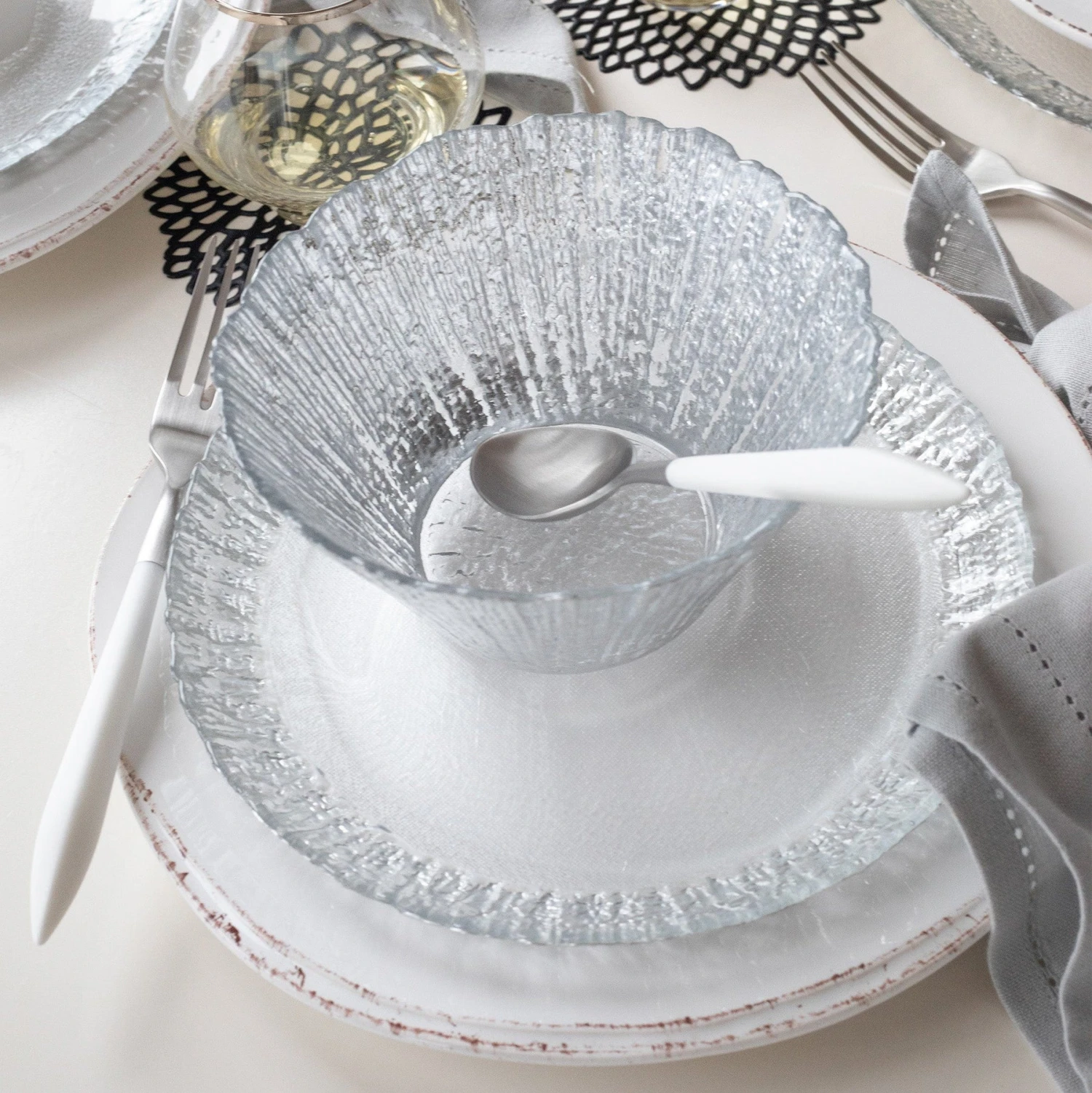 With glowing strands and beautiful texture, the Rufolo Glass Salad Plate brings luster, glamour, and irresistibly Italian style to your table.