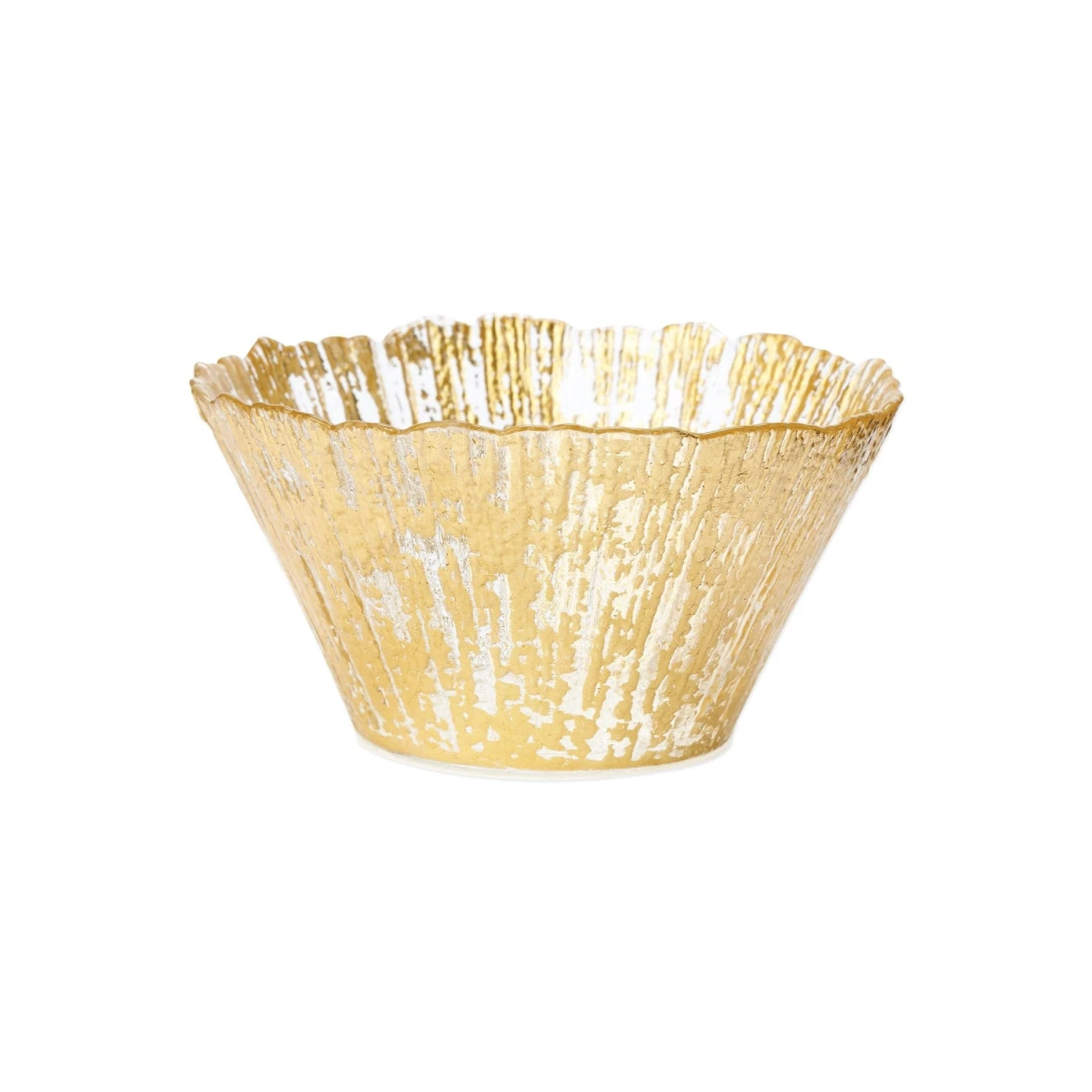 The Rufolo Glass Small Deep Bowl brings luster to your table. The glass piece is encircled with glowing strands, and the embellishment is effortlessly beautiful.